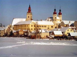 Založení města Telče spojováno s vítězstvím m or avského knížete Otty II. nad českým Břetislavem r. 1099. Na paměť bitvy prý založil vítěz kapli, později kostel a osadu, dnešní Staré Město. Hist or icky doložená je teprve zpráva o zeměpanském dv orci a strážní věži s kostelíkem – sídle královského správce. Toto královské zboží Telč vyplatil Karel IV. nejprve ze zástavy (1335) a později za pohraniční hrad Bánov (1339) s Jindřichem z Hradce. Tento r od zakládá novou Telč. Předp ok ládá se, že to byl Menhart z Hradce, který po roce 1354 postavil hrad, kostel, v od ní opevnění a gotické domy po obv od u rozsáhlého tržiště. Rozvíjející se město, obdařené již odKarla IV. právem hrdelním a výročními trhy, trpělo v dalším čase požáry (1386 vyhořela celá západní polovina náměstí včetně kostela a radnice) a později husitskými bouřemi.